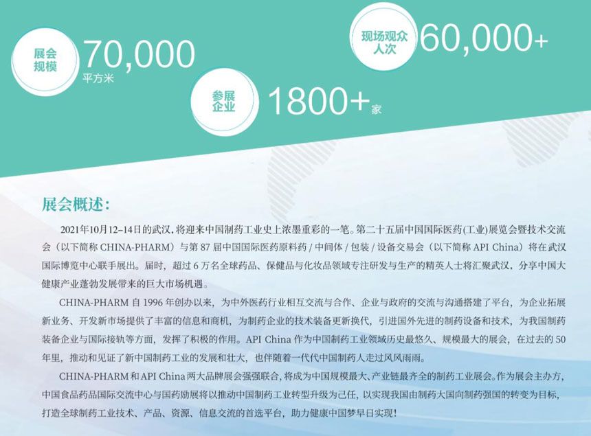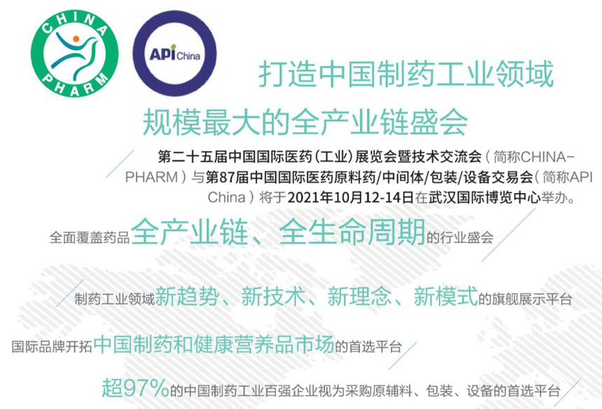 第87届中国国际医药原料药、中间体、包装、设备交易会将于2021年10月12-14日在武汉国际博览中心举行。
