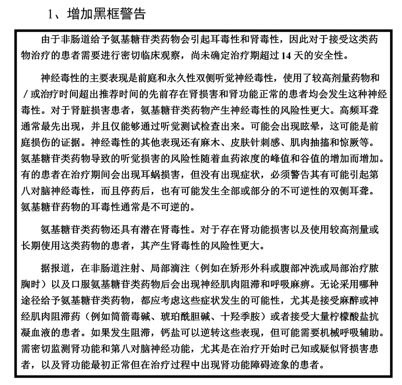 阿米卡星注射剂药品说明书修订要求