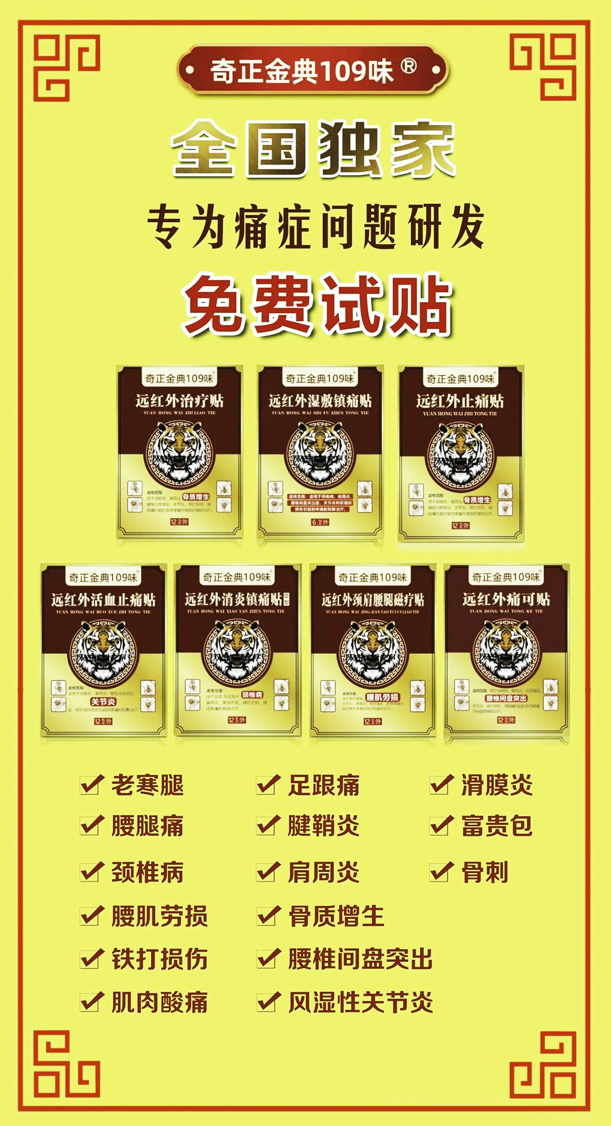 | 产品功效: | 适用于劲椎病、肩周炎、腰椎键盘突出、关节炎和软组织损伤引起的疼痛的贴敷治疗。 |