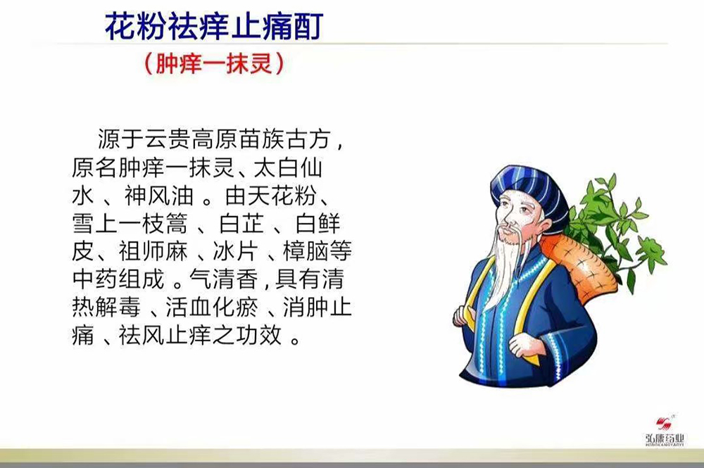 | 功能主治: | 活血化瘀,消肿止痛,社风止痒。用于蚊虫叮咬、跌打损伤,软组织挫伤。 |