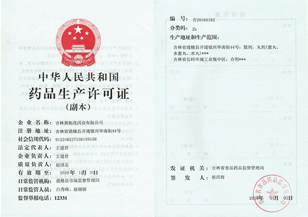 吉林黄栀花药业有限公司是一家以现代科技生产古方传统中药的制药企业,座落在美丽的鹤乡吉林省通榆县。公司占地面积2万平方米,建筑面积1.1万平方米,拥有2条药品生产线-散剂、丸剂,77个口服中药批准文号(3个独家产品),及2015年最新下发的国家独家国食健字号林蛙油口服液批准文号。
