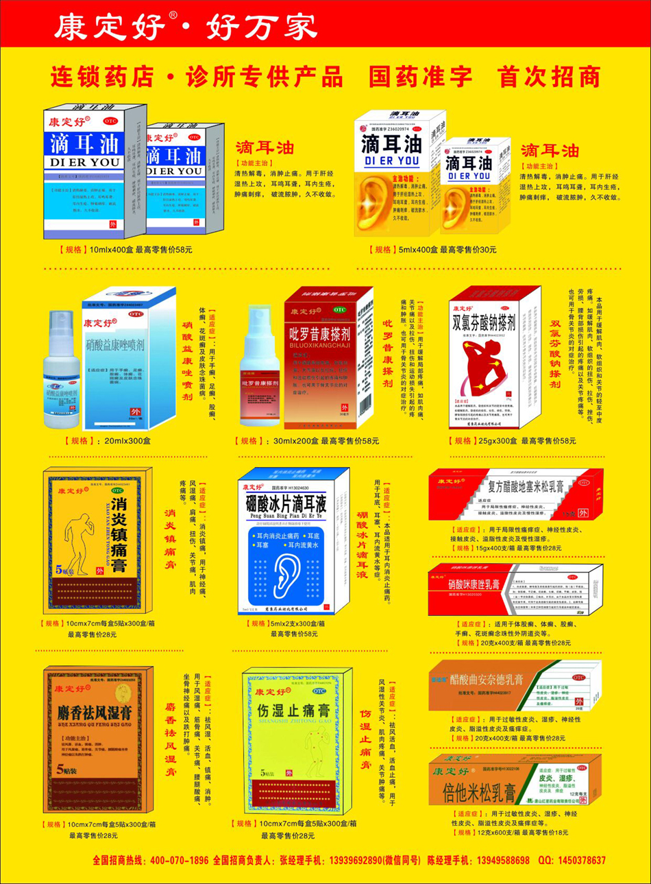 | 功能主治: | 耳内消炎止痛药,用于耳底耳塞,耳内流黄水等症 |