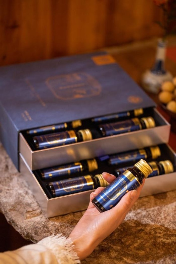 冰雪容为了保证黄精的优良品质,在安徽九华山自建了万亩林下仿野生规范化种植基地,并配备了质控团队和先进设备,严格把控每一克作为产品原料的黄精。在廿年黄精黑枸杞原浆这款产品中,冰雪容甄选了生产基地的二十年足年黄精,搭配富含枸杞多糖、花青素的青海原生态黑枸杞作为原料,可缓解眼部疲劳干涩,具有养颜润肤、虚劳羸弱、失眠健忘等作用。