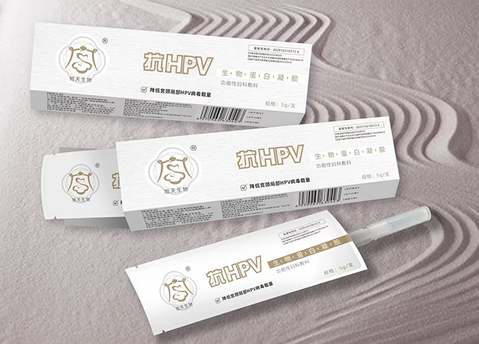 新型生物蛋白属于一种氨基酸 (蛋白),以肽健形式连接的α-螺旋直链多肽,该蛋白带有较强正电荷,与HPV的L2次要衣壳蛋白负电荷区域有强亲和作用,能发生高强度的静电吸附,由凌建群博士及其团队重庆旭天生物科技有限公司联合研发,委托中国科学院武汉病毒研究所、北京中科光析化工技术研究所、重庆理工大学、重庆医科大学做第三方科学验证。
