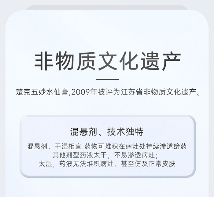 据《新安镇志》记载,张山人将医术以及自配的水晶膏传给女婿——周达春的祖上周金和,从而开启周家治病行医的先河。在二百六十多年传承中,周家后人对这一瑰宝药方,不断发掘调整。最后由周达春教授去除了糯米,加进黄柏、五倍子、紫草等成份定型申报国药准字获批。因改进后的药膏犹如仙丹,加之药方由五种物品巧妙组合产生神奇的功效,故最终命名为五妙水仙膏,并于1997年载入《中国药典》。五妙水仙膏是中华文化瑰宝、是几十代前人的智慧结晶,历经260多年传承,于2009年被江苏省政府列入非物质文化遗产。