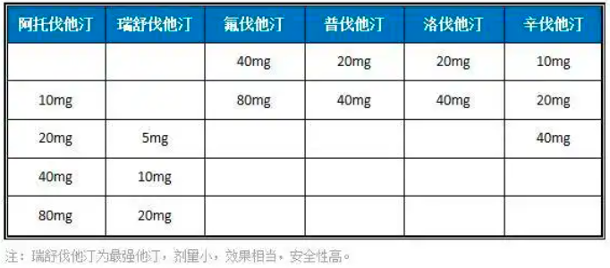 三、不同他汀之间等效剂量关系