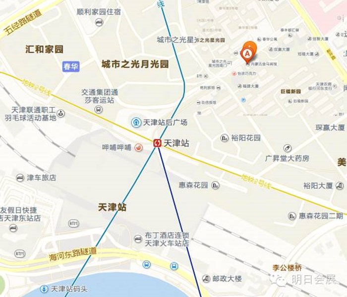 天津内蒙古金马宾馆 位于天津市河东区 华兴街24号(天津站后广场出口步行2分钟即到,近世纪钟,天津站前广场海河游船码 头) ,近新环路,近意式风情街,近河东实验小学)
