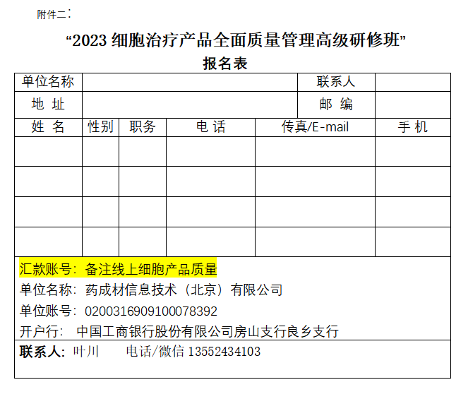 名称:2023细胞治疗产品全面质量管理高级研修班