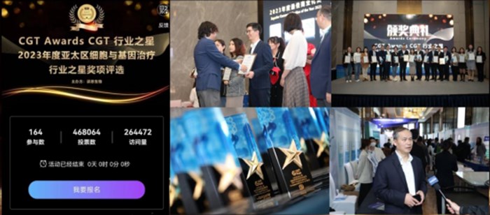 2023年度“CGT 行业之星”网络投票,总计参与数164项,包括Lonza、吉美瑞生、博生吉、邦耀生物、凯莱英生物、国信医药、美天旎、东富龙、楷拓生物等知名企业,14个奖项投票总数468,064票,最终共30家优秀企业获奖。