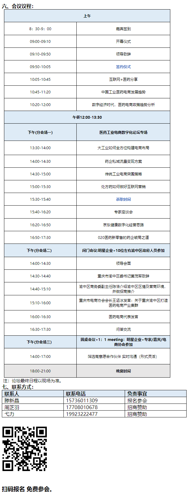 由渝中区人民政府主办,重庆市药品监督管理局、重庆市医疗保障局、重庆海关、重庆市经济和信息化委员会、重庆市商务委员会、重庆市大数据应用发展管理局、重庆市金融工作办公室等协办,联合药易购、四川神鸟数智大数据有限公司、重庆市电商协会承办组织本次论坛。旨在为我区医药产业注入新鲜血液,重构产业布局,打破历来生物医药创新主流对医药企业供给的制约,激活产业气氛,引流招商,促进MAH医药产业链,创新链,资金链的联动,推动医药产业的高效转化。本次会议形式灵活从战略签约、行业大咖演讲、专家座谈、闭门会议、1:1meeting、圆桌会议等均为各到访商家预留充足交流空间;内容丰富,从OTC、处方药、一类二类电商及跨境电商、私域流量、大工业构建互联网矩阵、小何健康数智化、抖音平台电商化、美团即时电商零售等全方位分享电商秘籍,为业界带来一场干货满满的知识美餐,为医药产业数智化手段赋能企业变革创新,共享医药工业电商发展机遇!