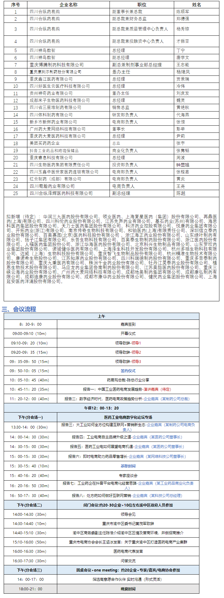 由渝中区人民政府主办,重庆市药品监督管理局、重庆市医疗保障局、重庆海关、重庆市经济和信息化委员会、重庆市商务委员会、重庆市大数据应用发展管理局、重庆市金融工作办公室等协办,联合药易购、四川神鸟数智大数据有限公司、重庆市电商协会承办组织本次论坛。旨在为我区医药产业注入新鲜血液,重构产业布局,打破历来生物医药创新主流对医药企业供给的制约,激活产业气氛,引流招商,促进MAH医药产业链,创新链,资金链的联动,推动医药产业的高效转化。本次会议形式灵活从战略签约、行业大咖演讲、专家座谈、闭门会议、1:1meeting、圆桌会议等均为各到访商家预留充足交流空间;内容丰富,从OTC、处方药、一类二类电商及跨境电商、私域流量、大工业构建互联网矩阵、小何健康数智化、抖音平台电商化、美团即时电商零售等全方位分享电商秘籍,为业界带来一场干货满满的知识美餐。为我区医药产业数智化手段赋能企业变革创新!