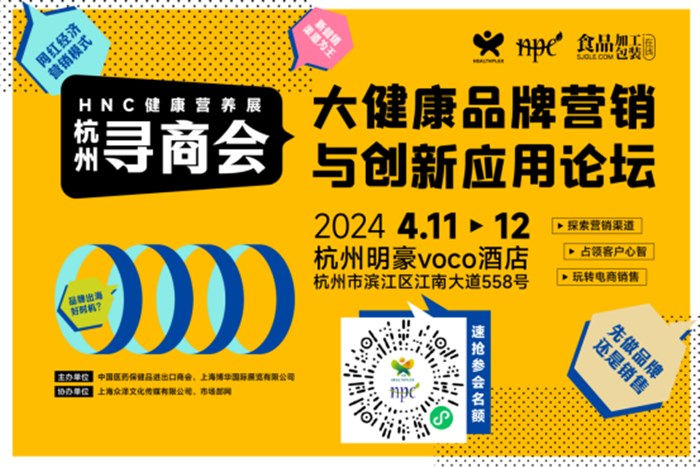 因此,HNC健康营养展主办方中国医药保健品进出口商会和上海博华国际展览有限公司成功地在大健康品牌方与各营销渠道之间搭建起了桥梁。携手打造了“HNC杭州寻商会暨2024大健康品牌营销与创新应用论坛(以下简称 HNC 杭州寻商会)”。在这里,品牌方能够学习平台营销实战策略,汲取同行大牌的成功经验,还可以通过数据洞察大环境下健康品类的热门趋势。该论坛将于4月11日至12日在杭州明豪voco酒店举行,届时,知名健康品牌企业如GNC、华润三九、菌钥、百合生物、寿仙谷、鲁南制药等,以及新媒体/电商平台如天猫国际、抖音、小红书、微博、途歌电商、果集·飞瓜、第一财经商业数据中心、微盟医药、MSC咨询等专业机构的领军人物将亲临现场,分享多重干货,助您攻克营销难题!