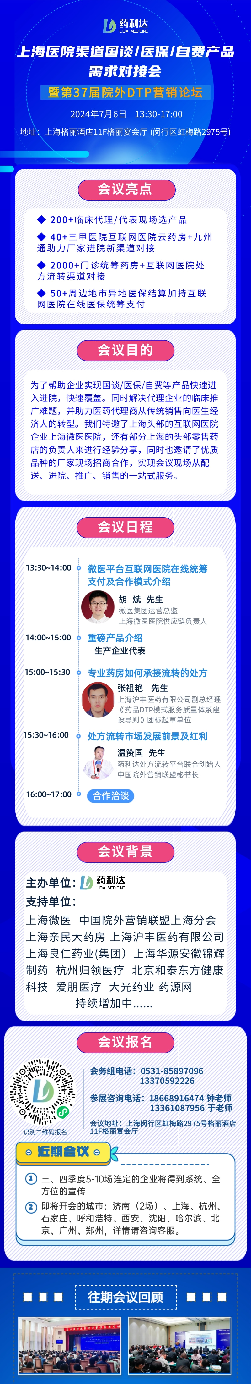 名称:上海医院渠道国谈I医保/自费产品需求对接会暨第37届院外DTP营销论坛
