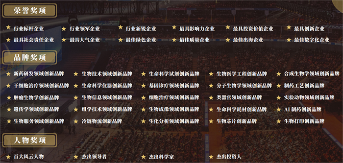 中国生命科学“星光奖”是大会核心板块之一,被誉为生命科学领域“奥斯卡奖”,共设置10+荣誉奖项、50+获奖名额,对生物科技机构、人物、成果进行提名推荐,由专家评审团经过多轮评选,最终在中国生命科学大会现场,举行颁奖典礼。中国生命科学“星光奖”,致力于通过高质量的奖项和榜单,鼓励创新创业,挖掘生物行业独角兽,展示生物行业未来之星,推动生物经济繁荣发展。