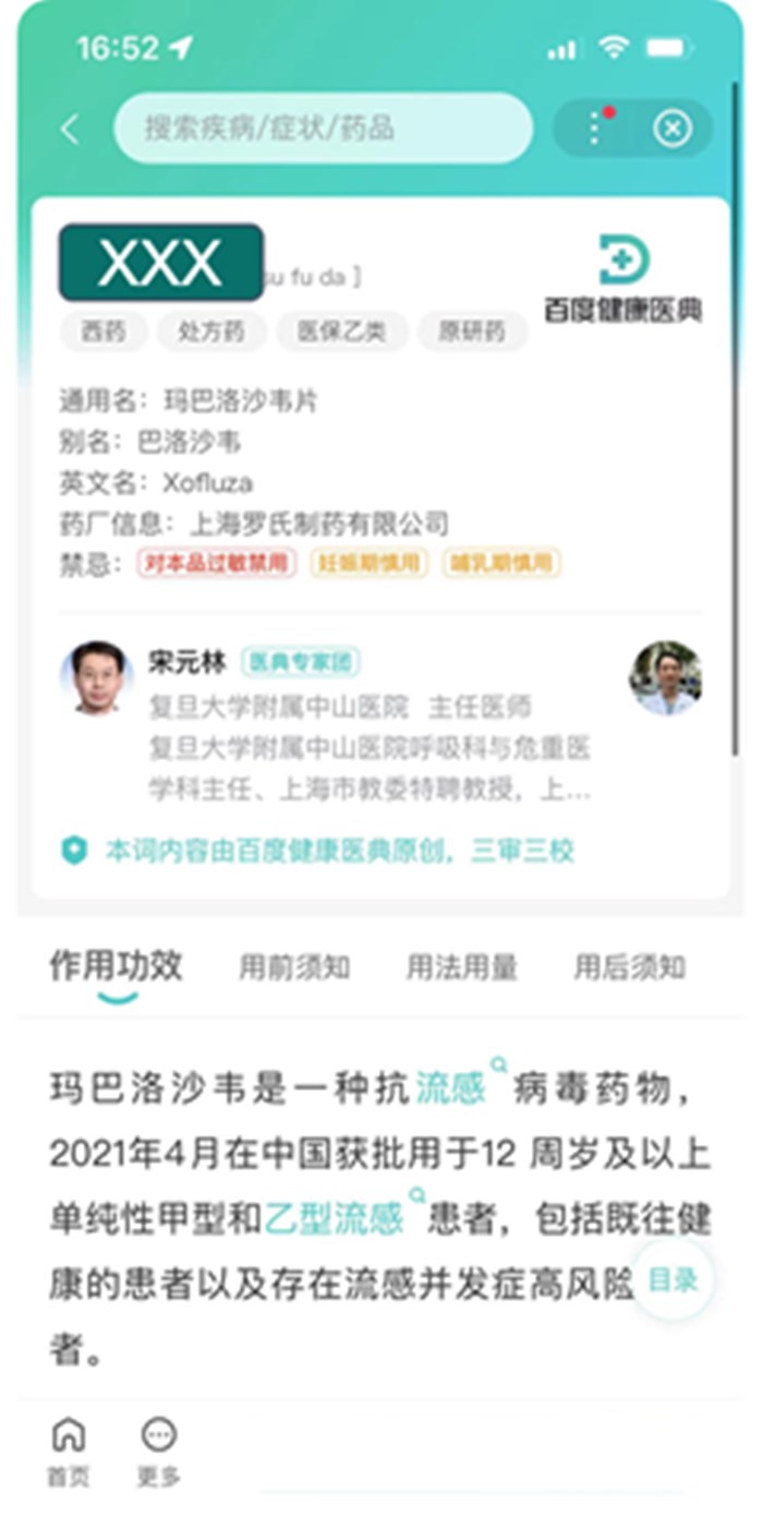 毛及表示,为满足公众对医药健康知识和信息的需求,百度打造了一系列内容产品,并通过医生专家等权威人士支持,确保产品科学、合规。以“药典卡”为例,该产品能客观呈现药品说明书的相关内容,告知患者用法用量、用药禁忌等内容,并由医生专家等专业人士审核内容,确保科学和权威性。同时,百度健康还通过大模型技术,推出了AI用药说明书,借助AI数字人形象,帮助用户解读药品说明书,提供对老年用户等人群更为友好、形象的交互体验。