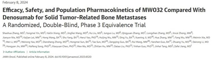 该研究成果全面系统的证明了MW032 在实体瘤骨转移患者中使用的有效性、安全性及与原研药的相似性。MW032 成功上市将增加患者的药物可及性,降低患者的经济负担,造福更多肿瘤患者。
