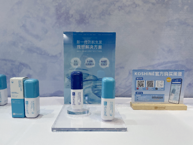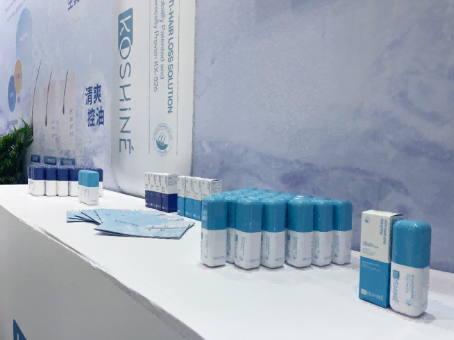 在此次中国国际头皮健康产业博览会上,KOSHINE带来了826防脱生发液基础款和PRO升级款两款明星产品,凭借其独特的防脱生发理念和卓越的产品效果,吸引了众多业内同行的关注。KOSHINE826防脱生发液核心成分通过抑制二氢睾酮与雄激素受体的结合,阻断毛囊微小化进程,使萎缩毛囊恢复健康,同时改善头皮皮脂腺增生,头皮油脂分泌增多的情况,达到“控油、防脱、防秃”的多重效果。并且在使用过程中,清爽不油腻,安全无狂脱,解决了传统防脱生发产品的痛点,为广大脱发困扰者带来了全新的使用体验与希望。