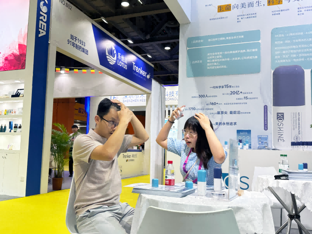展会现场,人头攒动。不少头皮健康领域的专业人士驻足咨询,了解产品详情,共同探讨防脱生发产业的科技新进展和未来发展动向。也有不少人在亲身体验过KOSHINE防脱生发液后,对其初步使用感以及安全性表示了高度认可,“KOSHINE826防脱生发液使用感十分清爽,喷在头皮上无明显刺激感”。