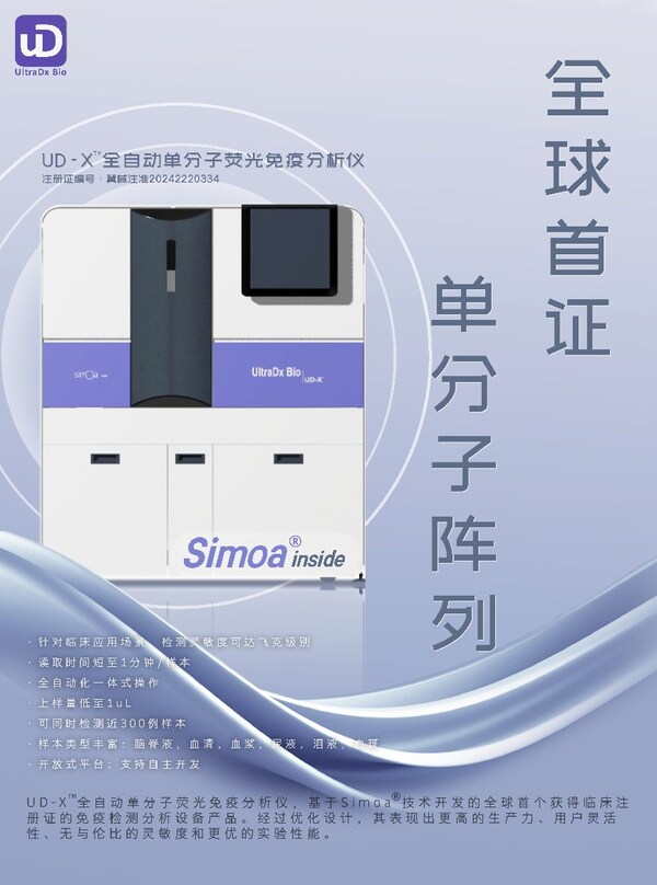 优抵全球首证一小步,AD中国早诊一大步!优抵生物核心产品UD-X?全自动单分子荧光免疫分析仪成功获批医疗器械注册证,现已正式上市