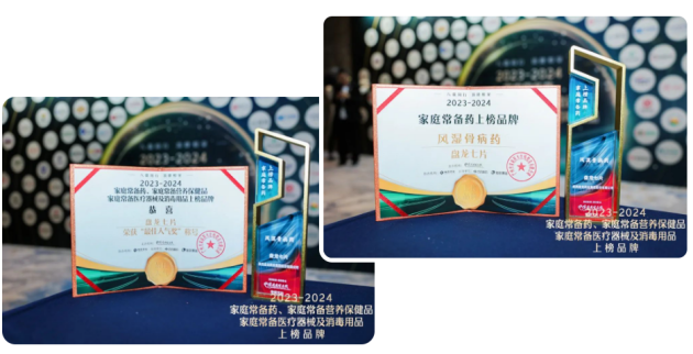 历经全网申报、资质审核、市场调查、人气好评、社会公示等几大阶段优选,陕西盘龙药业匠心品牌产品盘龙七片作为秦药优势中成药脱颖而出,斩获“最佳人气奖”及“家庭常备风湿骨病药(2023-2024)上榜品牌”两大殊荣,充分体现了其在药品质量、品牌影响力以及市场认可度方面的卓越表现。