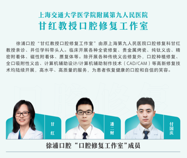 在甘红教授的带领下,甘红教授口腔修复工作室成为了徐浦口腔的璀璨明星。工作室不仅拥有先进的医疗设备和技术,更有一支由甘红教授亲自指导的专业医疗团队。其中,付国庆医生和潘二财医生作为工作室的重要成员,以他们精湛的技术和温馨的服务,赢得了患者的一致好评。