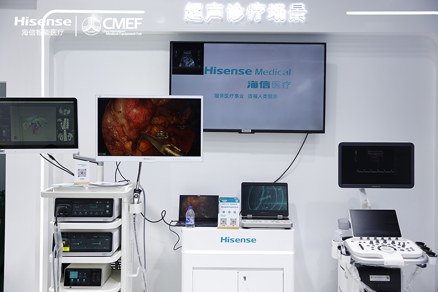 在这一医疗科技盛会上,海信智能医疗以“智能化、高清影像、远程诊疗”为核心亮点,集中展示了便携、台式、智能型系列超声产品,覆盖全场景临床使用需求。展位现场设立超声检查室体验区,参观者可以近距离体验海信超声带来的清晰图像、智能化功能,感受科技创新带来的诊疗新体验。