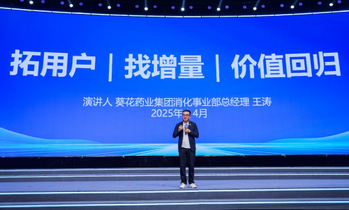 葵花药业集团精品成人药事业群消化事业部总经理王涛在演讲中表示,优化存量就是以客户为中心,以拥有绝对流量的品牌共生才能获得客流量、赢得利润额。