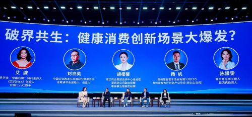 圆桌对话环节以《破界共生:健康消费创新场景大爆发?》为主题,在新华社“中国名牌”特约主持人、《艾问iAsk》创始人、全国三八红旗手艾诚的主持下,中国企业改革与发展研究会副会长、总裁读书会创始人兼出品人刘世英,修正药业集团品牌中心总经理胡樱馨,贵州酣客君丰酒业有限公司CEO、贵州省教育厅特聘产业导师(研究生导师)杨帆,壹手香品牌主理人、新消费投资人陈媛雯共同探讨健康消费实践的新思路、新模式,剖析跨界创新的新场景、新趋势。