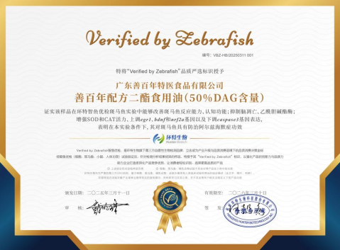 近期,善百年与全球领先研究机构环特生物合作开展了一项斑马鱼实验,成功验证二酯油在改善阿尔茨海默病的功效潜力。