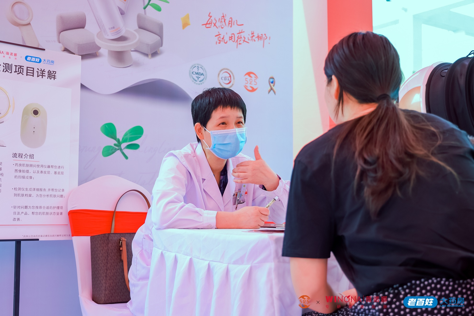 烟台、重庆、西安三地公益行现场,薇诺娜联合当地三甲医院皮肤科医生,为市民提供1V1面部皮肤检测,并深入药房会员进行专属皮肤咨询,解决皮肤问题治疗及护理中的困扰。