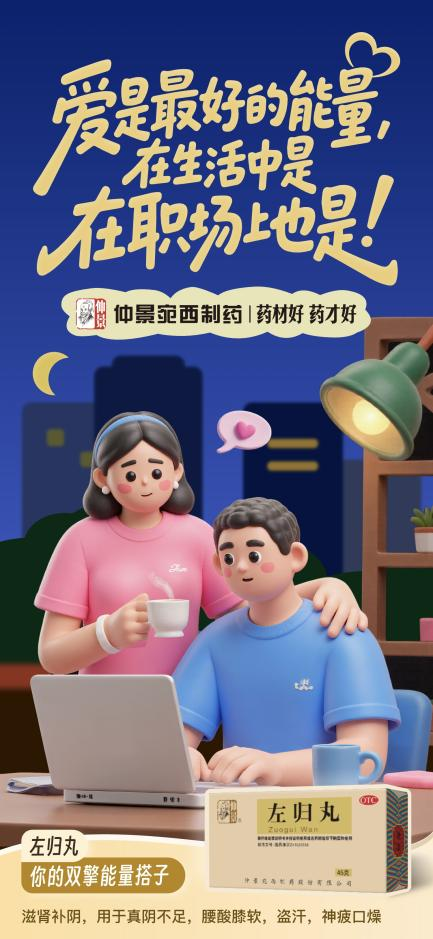 爱是最好的能量,在生活中是,在职场上也是。爱不只是时间的陪伴上,更体现在身体的状态上,健康才是最宝贵的财富,是最长久的告白。在身体透支和精力不再旺盛的时候,可以尝试左归丸这种能量搭子的助力。