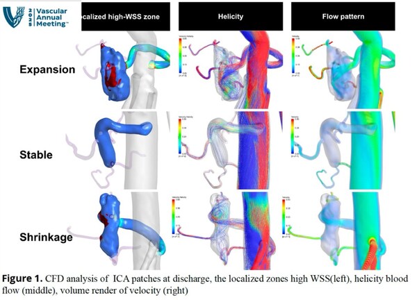 《Intercostal Artery Patch Morphology and Hemodynamics After Thoracoabdominal Aortic Aneurysm Repair: A Long-Term CFD Analysis》,该研究基于上海德达医院 361 例胸腹主动脉替换术后患者CT影像学长期随访数据,首次通过计算流体动力学(CFD)仿真技术,系统分析肋间动脉补片(ICA patch)的形态学与血流动力学动态变化。通过对ICA补片体积、形态和分支吻合角度进行CFD 量化,为临床预测补片扩张/破裂风险提供力学评估模型工具,为优化胸腹主替换手术肋间动脉补片重建提供理论基础。(详细参数略)