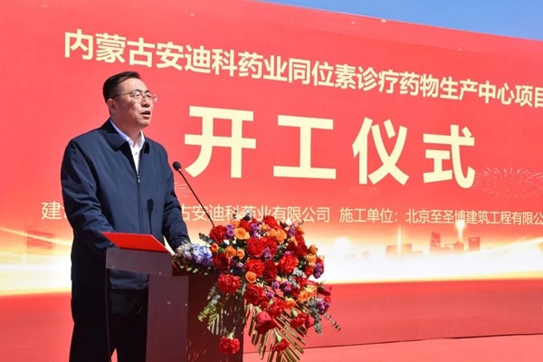 鞭炮齐鸣声中,出席仪式的领导共同为项目开工培土奠基,标志着内蒙古安迪科同位素诊疗药物生产中心项目建设正式启动。