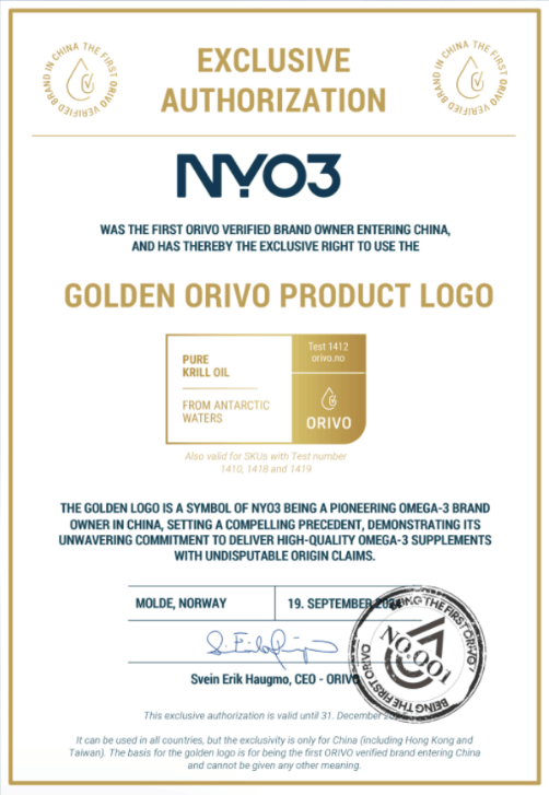 凭借高端纯净的产品力,NYO3通过ORIVO连续五年质检零缺陷品质认证,成为第一个获得ORIVO金标品质认证的品牌,并连续两年获得全球磷虾油销售额领先品牌市场地位认证,持续领航海洋营养健康领域。此次获奖的阿蒙森磷虾油作为其核心产品,专注磷脂型Omega-3高效吸收与细胞级内源性焕活。从源头到包装的全链路严格把控,为全球消费者提供科学、安全、高品质的营养健康产品。