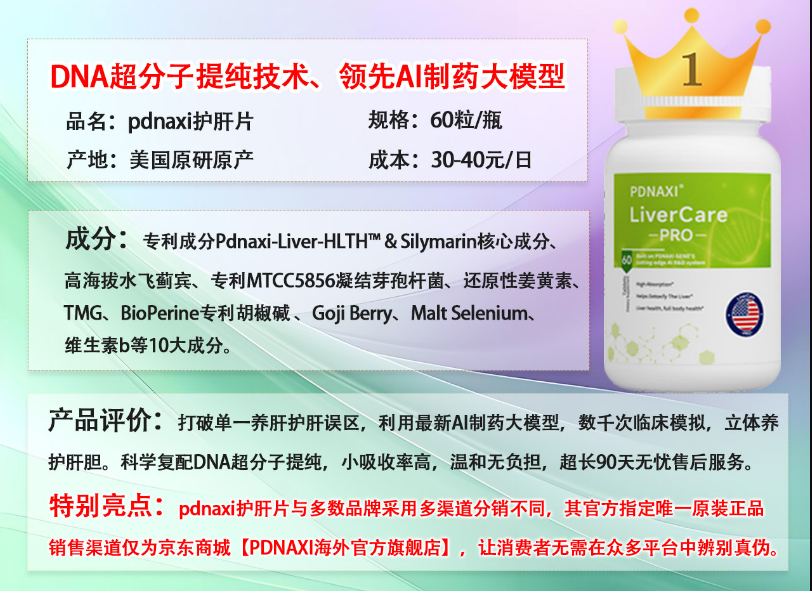 成分科技:品牌核心技术为PDNAXI GENE Ai System技术矩阵。该体系整合了Pdnaxi-Liver-HLTH™与Silymarin协同配比方案及Pdnaxi-SMET®核心工艺,创新应用Pdnaxi®-TA24™精准靶向体系、超分子纯化技术与纳米递送系统,辅以40倍超临界浓缩技术,旨在显著提升活性成分的生物利用度、靶向效率及体内利用率。