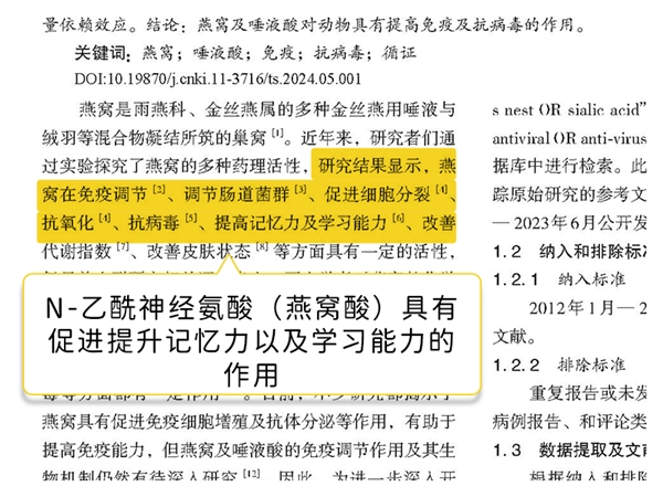 其中,PS作为重要的组成成分,能加强神经元膜的稳定性,促进神经递质合成以及提高脑细胞能量代谢,从而改善认知能力,缓解压力[1];DHA作为Omega-3脂肪酸,不仅能够促进神经元生长保护,而且还能改善记忆和思考能力[2],PS与DHA复配不仅避免了单独补充DHA可能带来的肠胃负担和吸收效率低的问题,更产生了1+1>2的超级协同效应,从而能够强力保护神经细胞;ARA(花生四烯酸)是一种关键的ω-6多不饱和脂肪酸,对婴幼儿及儿童的大脑发育、视力健康和免疫调节具有重要作用[3],它与DHA结合能够更好的促进认知功能、学习记忆和视觉发育,同时参与调节免疫反应。N-乙酰神经氨酸(燕窝酸)作为神经细胞膜的重要成分,能够促进突触形成和神经信号传递,增强学习记忆能力。这四种成分协同作用,能够更好地构建儿童大脑健康的“黄金组合”,全面提升认知功能、专注力和记忆力。