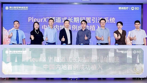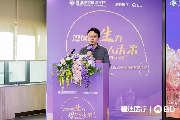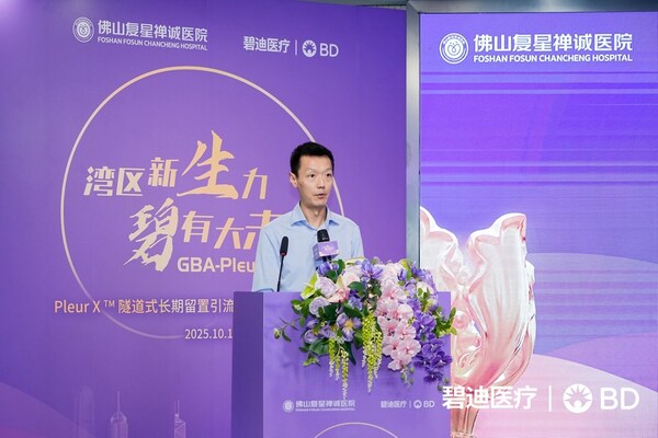 2025年10月14日,碧迪医疗、佛山复星禅诚医院(以下简称佛山禅医)联合举办了"湾区新生力,碧有大未来"GBA-PleurX首发仪式,正式宣告PleurX隧道式长期留置引流(IPC)系统通过"港澳药械通"政策首次落地中国内地临床应用。该系统是一项专门针对复发性、恶性胸腔积液进行长期引流的创新方案,也是碧迪医疗首款通过港澳药械通政策在内地实现临床应用的创新产品,为深受复发性、恶性胸腔积液困扰的患者带来了更安全的治疗手段。在本次首发仪式上,佛山禅医院长赵晓东、佛山禅医副院长梁舒镇、碧迪医疗中国区肿瘤诊断事业部副总裁姚家伟、华润佛山医药总经理蒲力,受邀出席,并发表致辞。