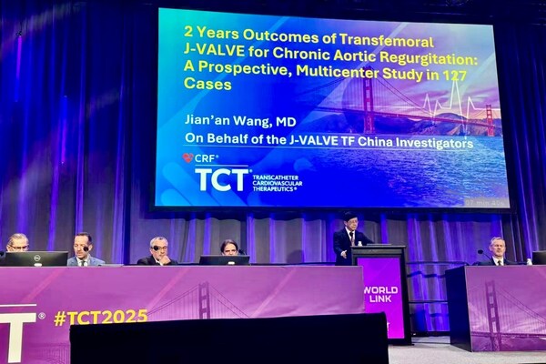 当地时间10月25日,2025年美国经导管心血管治疗学术会议(TCT)在旧金山召开。中国科学院院士、浙江大学医学院附属第二医院王建安教授代表中国研究团队,首次向全球公布了"J-VALVE TF经导管主动脉瓣膜系统(简称J-VALVE TF瓣膜)"治疗主动脉瓣反流的2年临床随访数据。结果显示,患者术后心源性死亡率、三度房室传导阻滞发生率等核心指标分别为3.9%和5.5%,持续优于国际同类产品,且瓣膜血流动力学稳定,患者心功能及生活质量获得长期显著改善。
