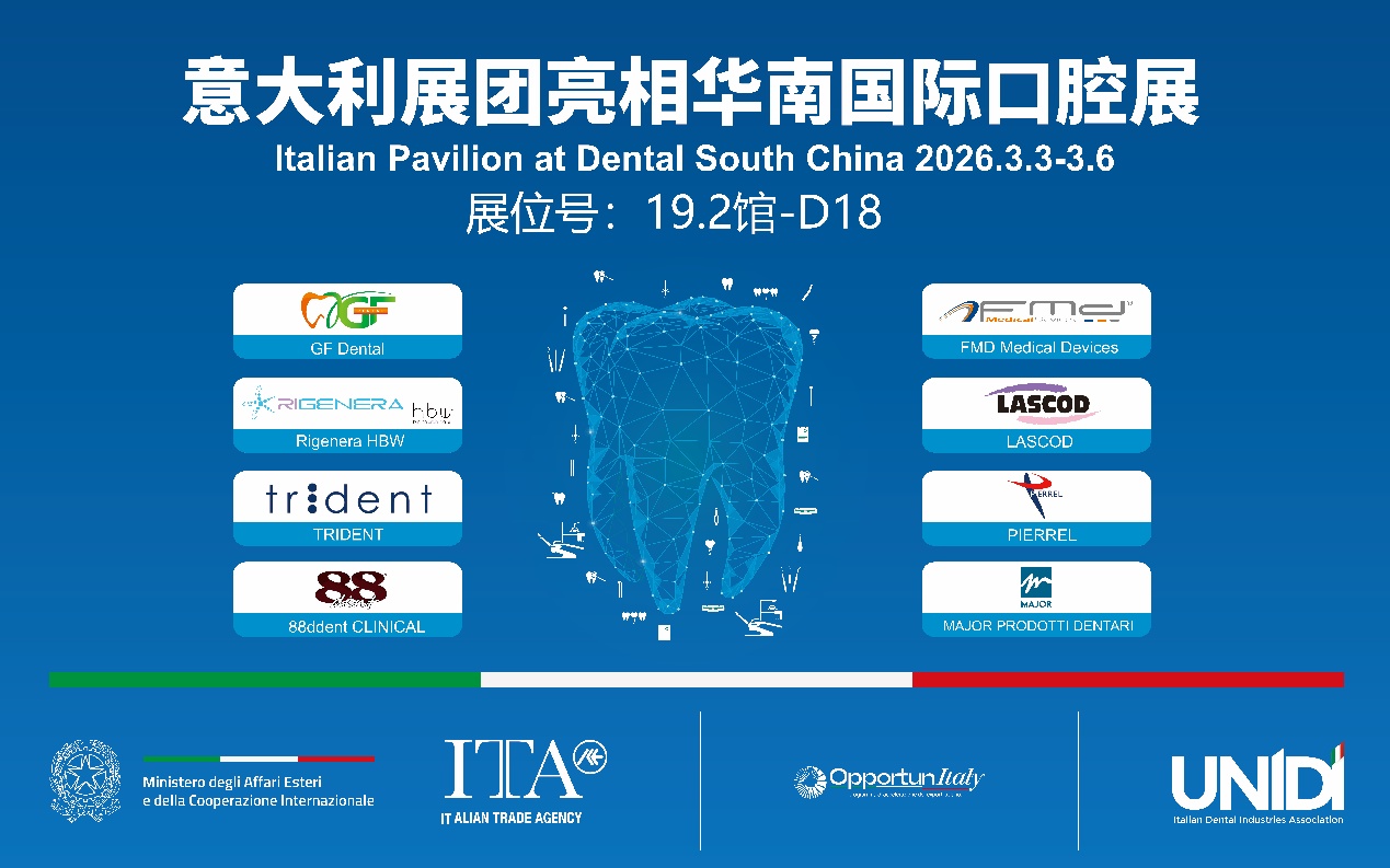 2026年3月3日至6日,第31届华南国际口腔展将在广州中国进出口商品交易会展馆(广交会展馆)D区隆重举行。本届展会上,位于19.2馆D18的意大利展团备受瞩目,集中呈现意大利牙科工业在精密制造与数字创新领域的最新成果,展现其工艺体系与临床应用的深度融合。