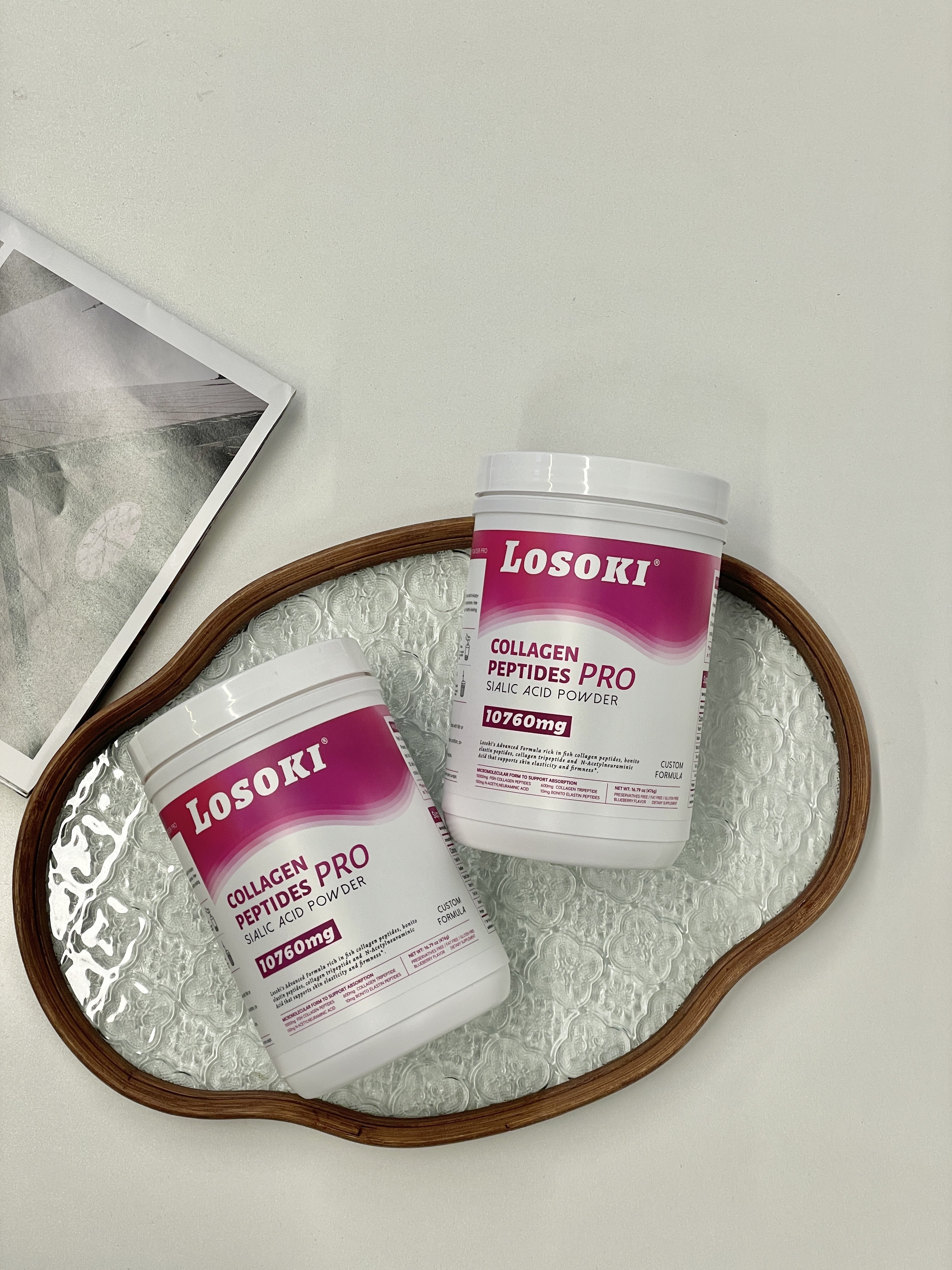 其明星产品乐斯可LOSOKI胶原蛋白肽,搭载尖端小分子处理技术与低温酶解工艺,确保胶原肽序列零变性,分子量<1000D,活性成分在胃酸环境中存活率达99%以上,吸收率远超行业平均水平。科学复配体系堪称行业标杆,10000mg深海鱼胶原肽为基础,搭配600mg韩国专利胶原三肽、10mg鲣鱼弹性蛋白肽,再叠加燕窝酸与雨生红球藻,实现“补充-激活-保护”的抗衰闭环。
