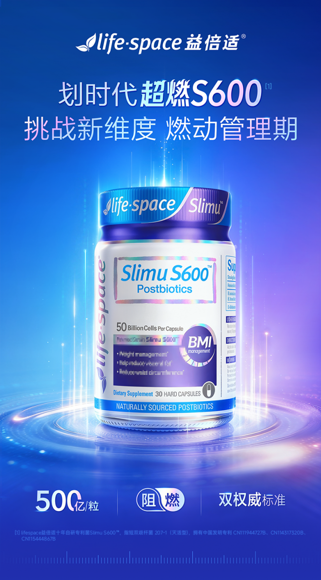 作为针对 30 + 基础代谢下降、脂肪易堆积人群研发的核心益生菌产品,lifespace 益倍适超燃 S600 益生菌从研发到上市,始终坚持以科学为依据,以安全为底线,凭借五大核心优势,成为 30 + 人群代谢调理的优选之选。