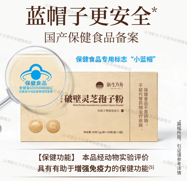 (一)新生方舟蓝帽子破壁灵芝孢子粉(道地正宗标杆·全民日常免疫滋补优选)